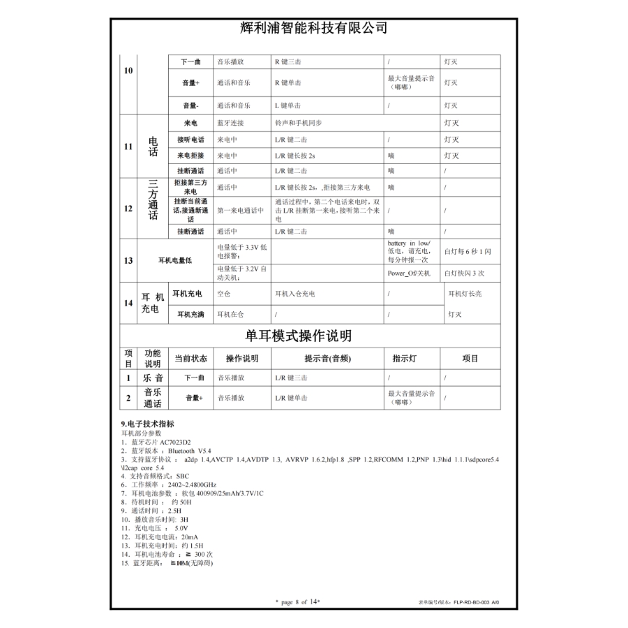 Support protocol configuration: HFP1.7/HSP1 . 2A2DP1.3/AVRCP1.6/AVDTP 1 3/AVCTP/SPP 1.2-