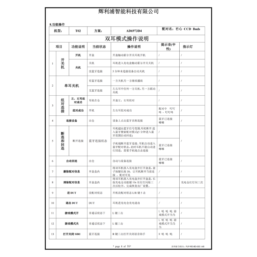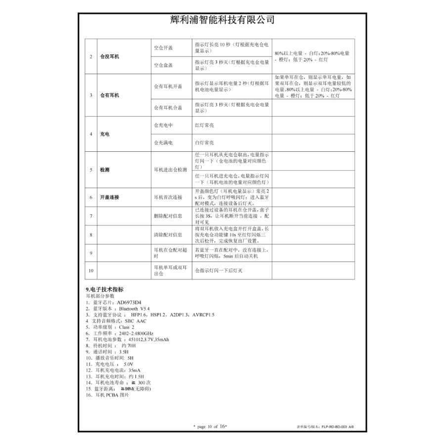 Configuration support: HFP1.7/ HSP1.2/A2DP1.3/AVRCP1.6/AVDTP 1 . 3/AVCTP/SPP 1.2