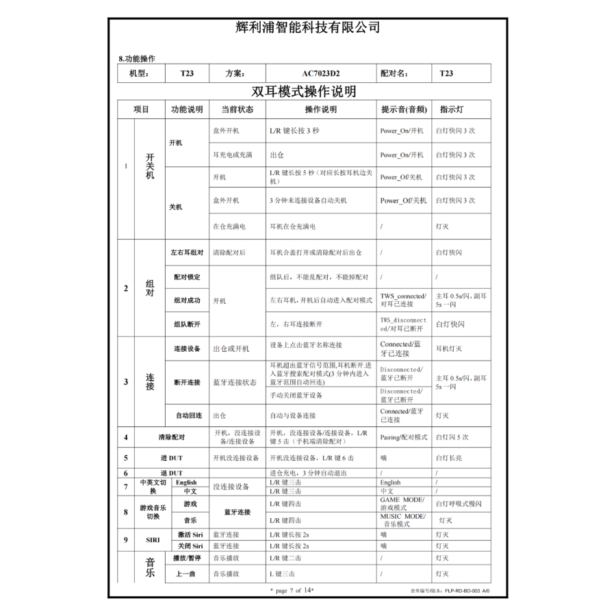 Support protocol configuration: HFP1.7/HSP1 . 2A2DP1.3/AVRCP1.6/AVDTP 1 3/AVCTP/SPP 1.2-